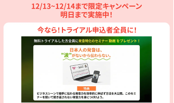 スピーキングを鍛えるアプリ「スピフル」は7日間の無料体験ができます。無料体験に進みたい方は、こちらのリンクから公式サイトにて申し込んで下さい。